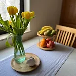 이 100m^2 아파트는 프랑크푸르트 한 공항에서 15km 떨어져 있습니다. 이 숙소에는 테라스도 있습니다. 숙소에는 정원, 정원, 정원이 있습니다.